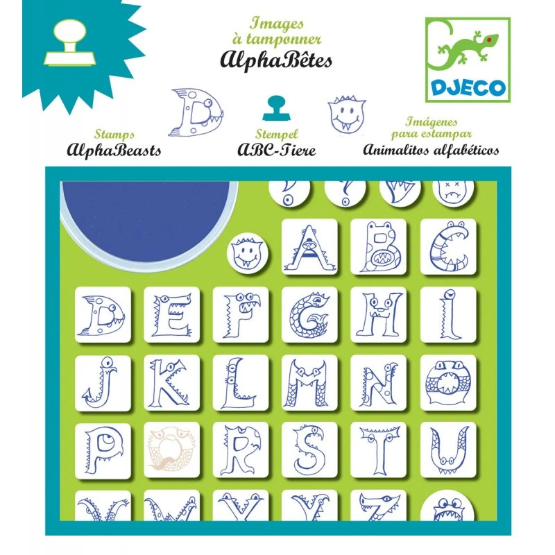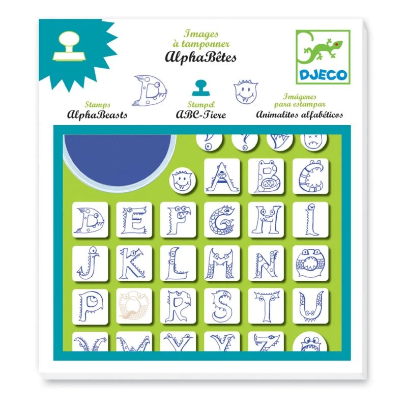 Un coffret de tampons représentant les lettres de l’alphabet avec un style très particulier ! Les enfants s’amuseront à tamponner et colorier ces lettres rigolotes et pourront pour les plus jeunes commencer à se familiariser avec l’alphabet de façon ludique.
