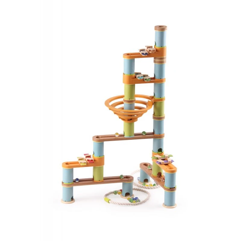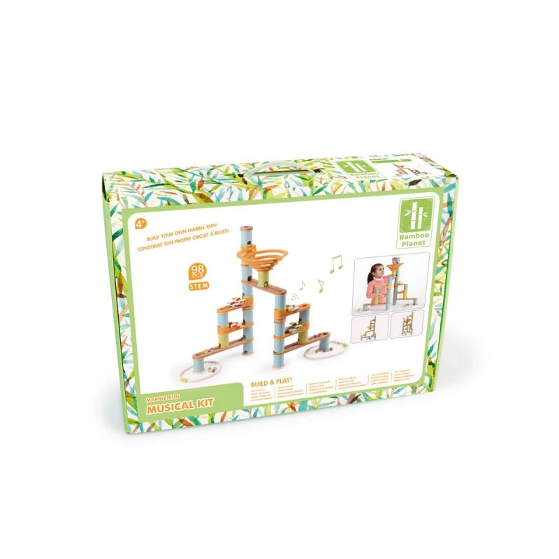 Découvrez les magnifiques circuits de billes Bamboo Planet avec ce circuit de billes musical de 98 pièces. Il combine un toboggan à billes en bambou avec plusieurs lames de xylophones à disposer le long du parcours des billes.