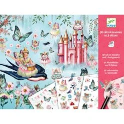 Au pays des fées est un magnifique coffret de décalcomanies pour les jeunes filles de 4 à 8 ans. Ce coffret de Djeco contient 3 grands décors féeriques et 3 feuilles de décalcomanies. Les décalcomanies sont des illustrations de fées, de fleurs, de papillons, d’oiseaux, … dans de jolis tons pastels