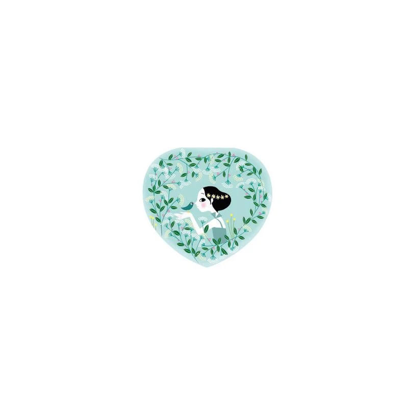 Danseuse en herbe est une nouvelle boîte à bijoux musicale très poétique de la marque Djeco. La boîte aux couleurs douces et dessins évoquant la nature est en forme de cœur. En l’ouvrant vous découvrirez un écrin rose fuchsia permettant de garder les petits secrets et les premiers bijoux de votre fille. En remontant le mécanisme manuel, la danseuse se mettra à tournoyer devant le miroir, lui aussi en forme de cœur.