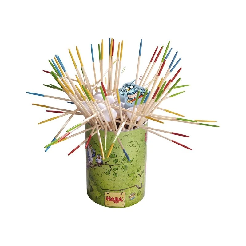 Chaque joueur devra tour à tour tirer des baguettes pour construire le nid et tenter de poser un œuf. Attention si un joueur fait tomber un œuf il devra en prendre un au joueur à qui il en reste le plus.
