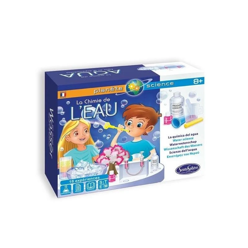 La chimie de l’eau est un coffret scientifique Sentosphère d’initiation à la chimie. Il permettra à votre enfant de découvrir les phénomènes de pression, de condensation, de transfert, d’absorption, de distillation et de filtration au travers 16 expériences amusantes. Il va également pouvoir comprendre la chimie des bulles et bien sûr en créer.