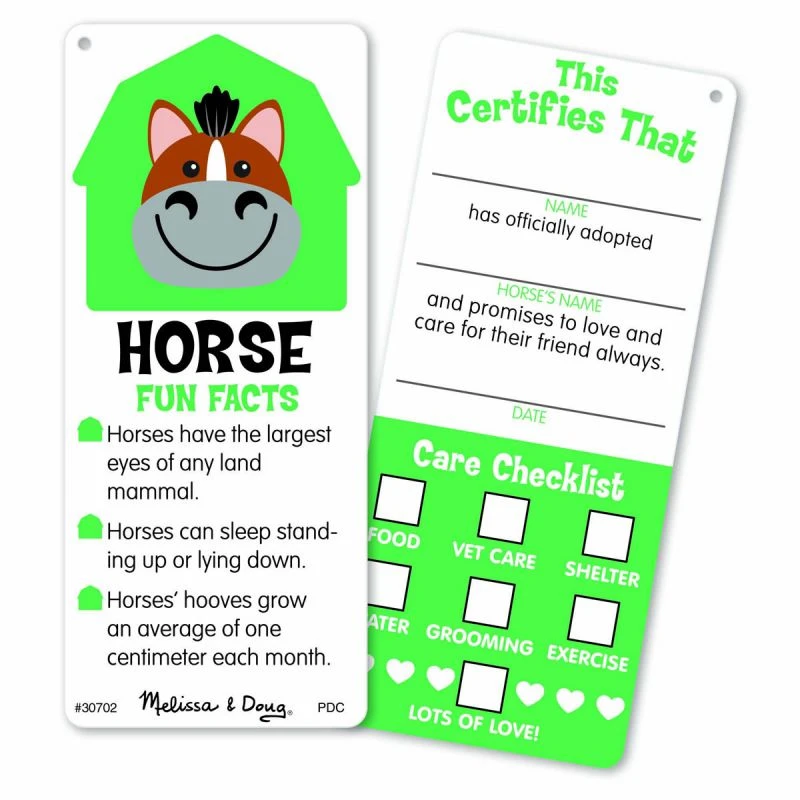 Cette peluche géante de cheval sera un copain doux et confortable. Ce cheval doux, brun, noir, gris et blanc, aux oreilles douces et pointues, à la queue et à la crinière soyeuses, et aux « sabots » veloutés, mesure environ 70 cm de long juste ce qu’il faut pour les gros câlins. La peluche est habillée d’un joli collier vert à points blancs cousu et elle est livrée avec un badge à personnaliser, une liste de suivi des soins, un certificat d’adoption et une carte avec des informations étonnantes sur les chevaux (en anglais).