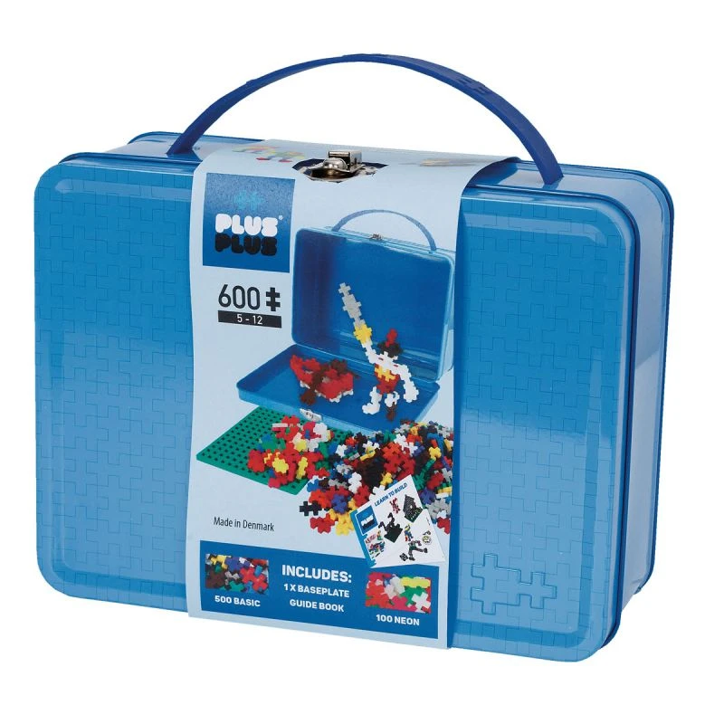 Avec cette belle valisette en métal les enfants vont pouvoir emporter leurs plus plus partout avec eux. Ils découvriront dans cette mallette 600 plus plus (dont 500 basic et 100 néons) ainsi qu’une plaque pour servir de support aux futures œuvres et un livret d’exemples pour apprendre à construire.
